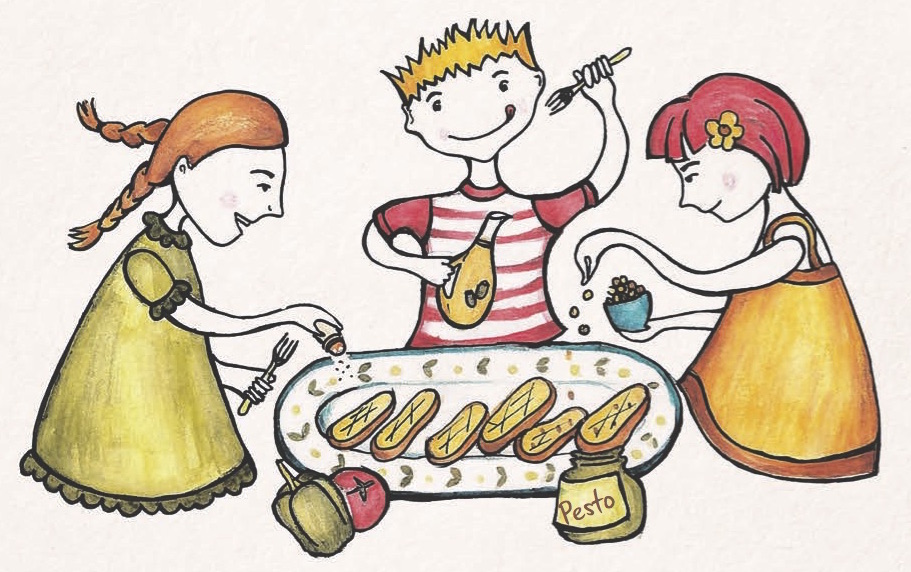 2. Varianta “Simt nevoia de ceva sarat”: ung patatele cu pasta de masline si presar desupra ceapa verde sau patrunjel. Merge cu rosii dulci, culese coapte sau cu salata de verdeturi. Aveti in Simplu 1 mai multe idei de “gatit” cu verdeturi, la poezia cu pitici: “De patru ori verde, ghici? Leurda, mangold, spanac, urzici.”