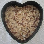 Mod de preparare: Se pun toate ingredientele in blenderul cu cupa si se mixeaza pana devine o pasta. Dupa cum veti vedea in fotografie, eu nu am lasat migdalele mai mari, nu chiar pasta, mi-a placut cum arata si a fost o varianta apreciata. Se pastreaza 2 linguri din compozitie pentru glazura. Restul de pasta se intinde sub forma de blat intr-o forma de inox, poate fi rotunda sau patrata, eu am ales inimioare :). Se baga la frigider pana pregatiti crema.