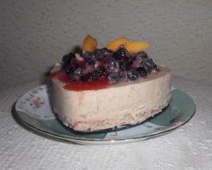 Si pentru ca am vorbit de inspiratie … o noua reteta. Super – mami Andreea, pe care am intalnit-o doar virtual, pe blog, si care are 2 pui vegetarieni, m-a rugat intr-un comentariu sa ii dau reteta tortului fara foc, vegan (fara proteine animale). (Actualizare 24 noiembrie 2012: tortul asta nu se mai poate numi hrana vie, fara foc sau “raw”. Pentru simplul motiv ca ceea ce ni se vantura pe sub nas drept caju crud NU E crud, ci foarte tratat termic. Cum asa? Mimi Walter, prietena si mentor drag, cu o experienta practica impresionanata in domeniul hranei vii, ne educa in articolul sau, “Adevarul despre caju” si ne da si sursa pentru caju raw daca doriti ca tortul sa fie autentic fara foc). M-am gandit sa i-o trimit repede pe mail, apoi, in timp ce scriam reteta mi-au venit idei noi, le-am testat, am facut si ceva fotografii si nu ma pot opri din a le impartasi acum cu toata lumea. Desertul este foarte nutritiv, dar il gasesc totusi destul de greu datorita continutului mare de grasimi. Cel putin pentru copii. Asadar, moderatie. M-a castigat pentru ca e usor de facut, mai ales daca ai un blender puternic (o sa spuneti ca sunt subiectiva, stiu ;)). Poate ca obtinerea ingredientelor o sa vi se para o operatiune mai dificila, insa eu am gasit totul la Biomarkt. Prepararea dureaza maxim 30 min, iar el trebuie sa stea cuminte la frigider, cu totul vreo 8-9 ore, adica isi cam face treaba singur.