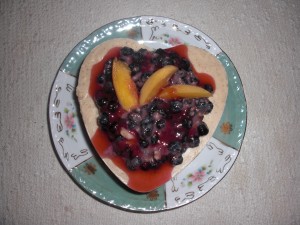 Pentru varianta de afine am folosit afine si cocos. Bineinteles ca puteti folosi orice fructe, in orice combinatie, le amestecati cu 2 linguri din compozitia blatului si mierea. Se pune peste crema de la frigider si se mai lasa 2 ore si apoi … gaaaata.
